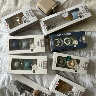 The pacifers 8/10 They’re so cute! Looks good with outfits very aesthetically pleasing and just great quality! The teats are so soft, the choice of three different shapes makes it perfect to get something right for each individual baby! Works so well with the pacifier clip!